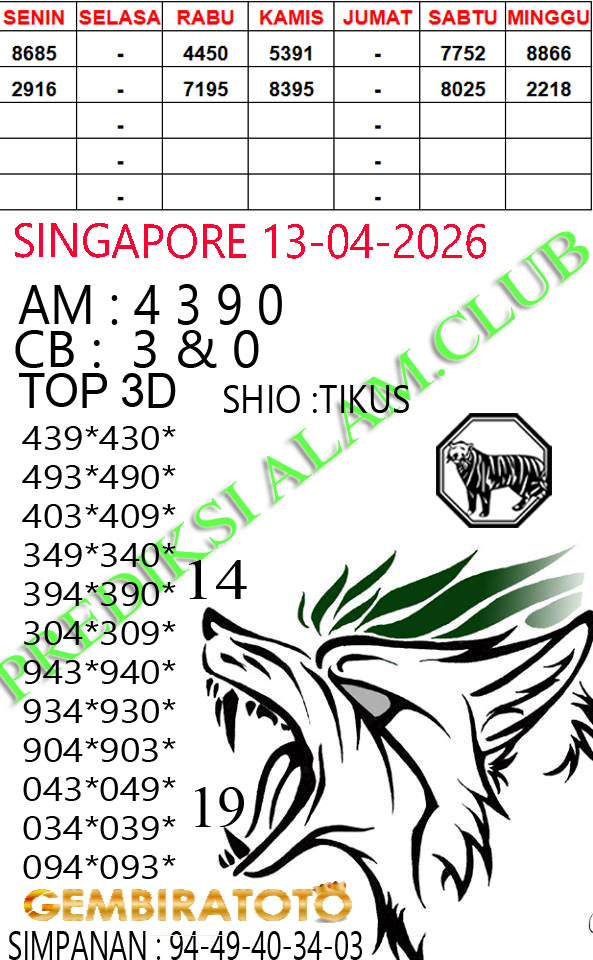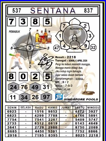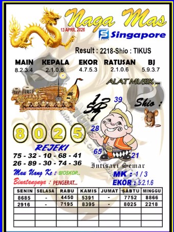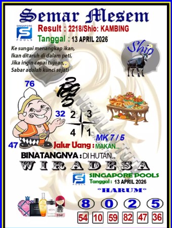 Syair Singapore Senin 13 April 2026