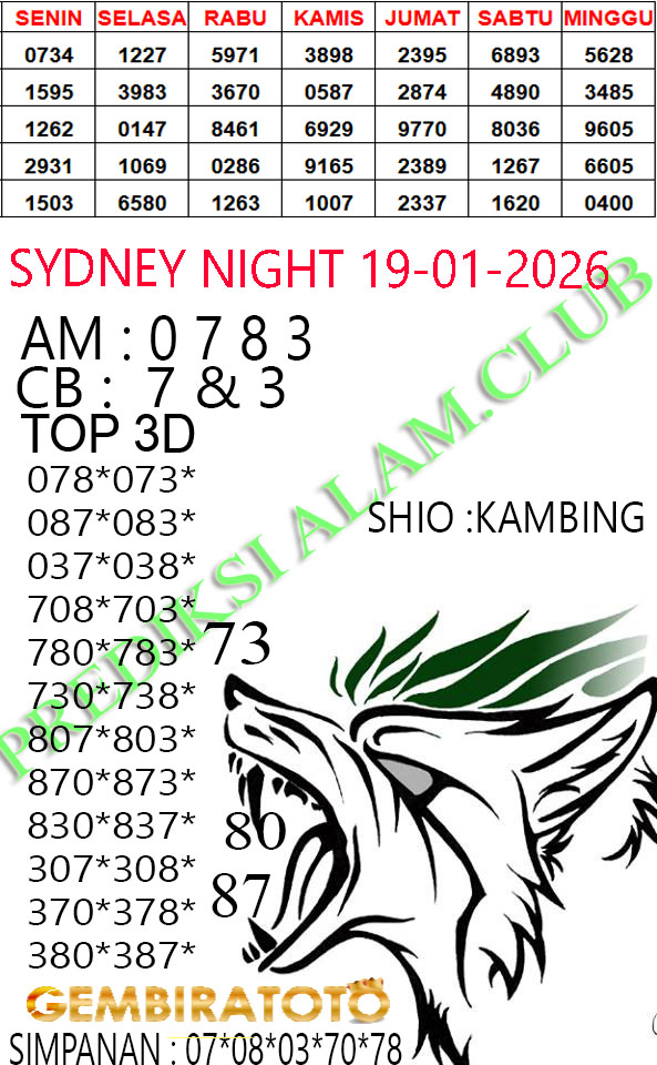 Syair SydneyNight Senin 19 Januari 2026